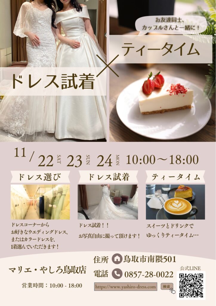 【東部・鳥取開催】ドレス試着会×ティータイム
